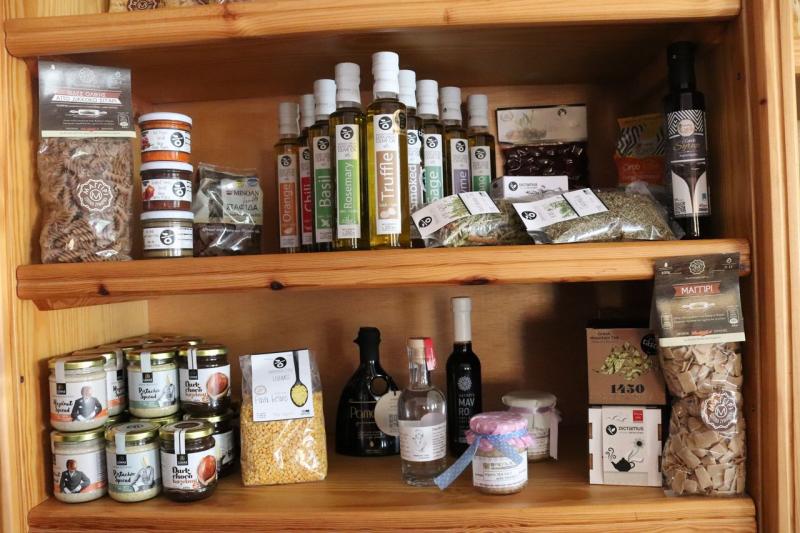 - Τοπικά παραδοσιακά προϊόντα: Ανακαλύψτε το κρητικό λάδι, το κρητικό μέλι, προϊόντα μελιού, ελιές και πάστα ελιάς που φέρνουν τις γεύσεις της Κρήτης στο πιάτο σας.