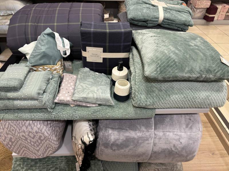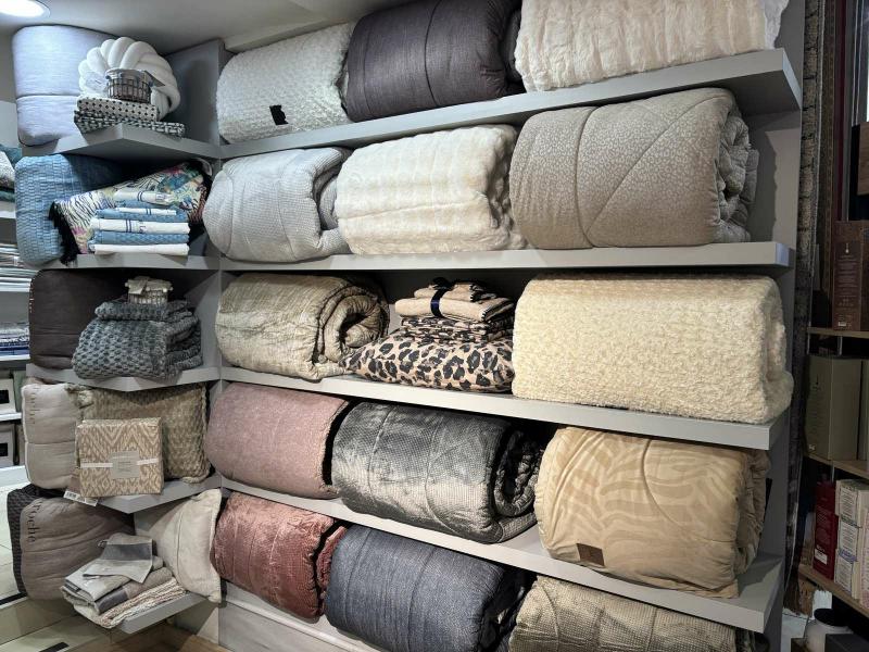 - Λευκά είδη: Παπλώματα, σεντόνια, μαξιλάρια, πετσέτες και ριχτάρια που συνδυάζουν άνεση και κομψότητα.
