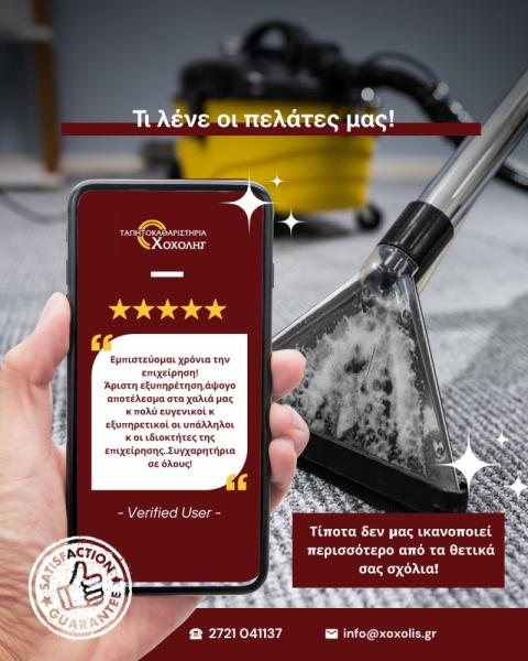 - Καθαρισμός χαλιών: Χρησιμοποιούμε προηγμένες τεχνολογίες καθαρισμού για την εξασφάλιση του καλύτερου αποτελέσματος.