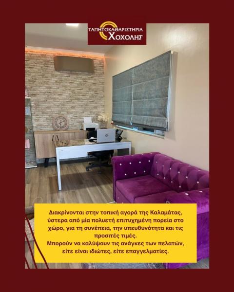 Η επιχείρηση "Χόχολης" είναι το κορυφαίο ταπητοκαθαριστήριο στην Καλαμάτα, εξυπηρετώντας την ευρύτερη περιοχή της Μεσσηνίας με επαγγελματισμό και συνέπεια. Αποτελείται από μια ομάδα ειδικών στον καθαρισμό χαλιών, μοκετών, στρωμάτων, σαλονιών και χαλιών γάμου, προσφέροντας ολοκληρωμένες λύσεις καθαρισμού που ικανοποιούν τις πιο υψηλές απαιτήσεις των πελατών.