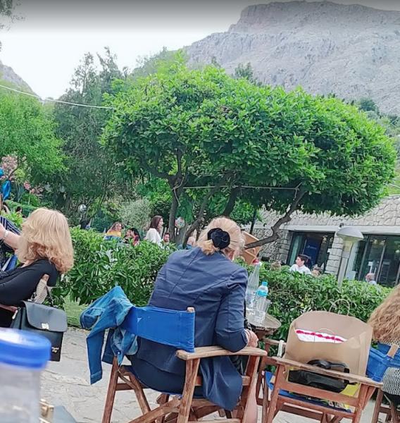Απολαυστικός καφές στο Βροντάδο Χίου πάνω στην Θάλασσα. Σύμφωνα με την ελληνική Μυθολογία ήταν η κόρη του Υπερίωνα και της θείας, θεά της Αυγής, αδερφή του Ήλιου και της Σελήνης. Κατά τους αρχαίους μύθους ήταν μια πολύ όμορφη γυναίκα που ενίοτε απεικονιζόταν πτερωτή και την οποία ερωτεύτηκε ο Άδης.